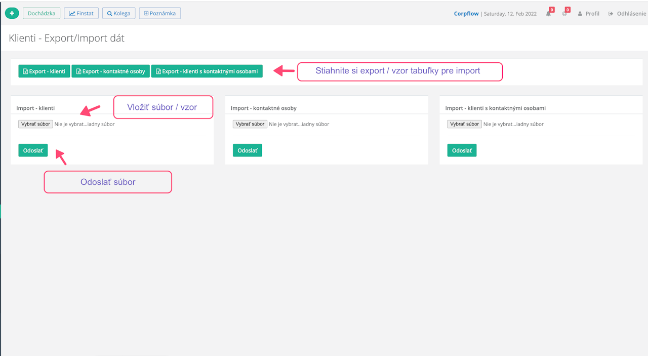 - Kliknite na zvolený typ Exportu (stiahnete si vyor Excel súboru)